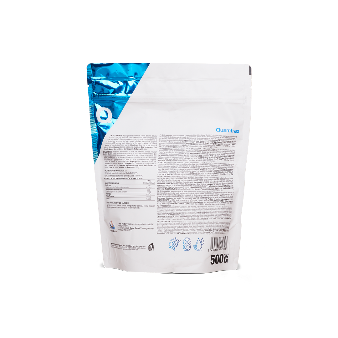 Cyclo Dextrin 500gr Quamtrax es el complemento perfecto para aquellos que buscan maximizar su rendimiento deportivo, asegurando energía sostenida y una óptima hidratación durante los entrenamientos.