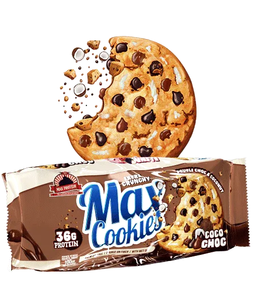 Con las nuevas MAX COOKIESCon 36G de proteína y con todo el increíble sabor MAX PROTEIN®