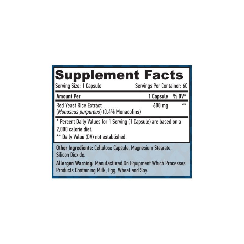 - 600 mg red yeast rice extractProvides a natural source of monacolin K, known to reduce LDL ("bad") cholesterol levels.
