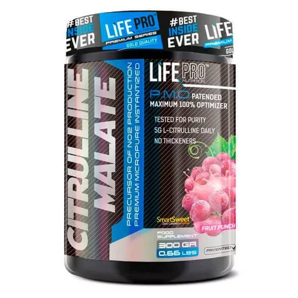 It may be that Life Pro Citrulline Malate may not be one of the best known or most popular supplements in the world of fitness, but the reality is that it is a product with a number of benefits. highly valuable properties for any athlete, especially in the case of athletes who are looking for a performance enhancement geared towards lean mass gain and lean mass volume. The first thing to say is that 'Citrulline Malate' is the combination of two compounds: Citrulline and Malic Acid (malate). A non-essential amino acid and an acid, respectively.