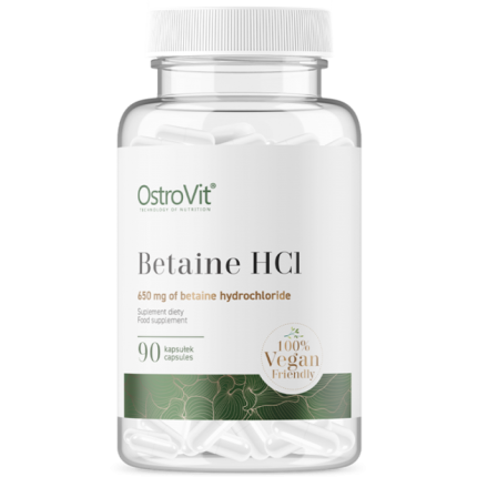 Suplemento alimenticio vegano en cápsulas a base de clorhidrato de betaína, un aminoácido presente en algunos granos y mariscos. Favorece el mantenimiento normal de los músculos y contribuye al bienestar del sistema digestivo. Sus componentes promueven el equilibrio de los ácidos gástricos. Indicado para adultos.