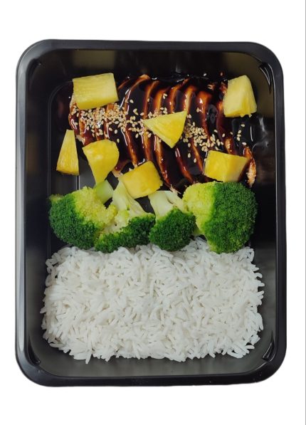 Pollo teriyaki con arroz Basmati, verduras y piña